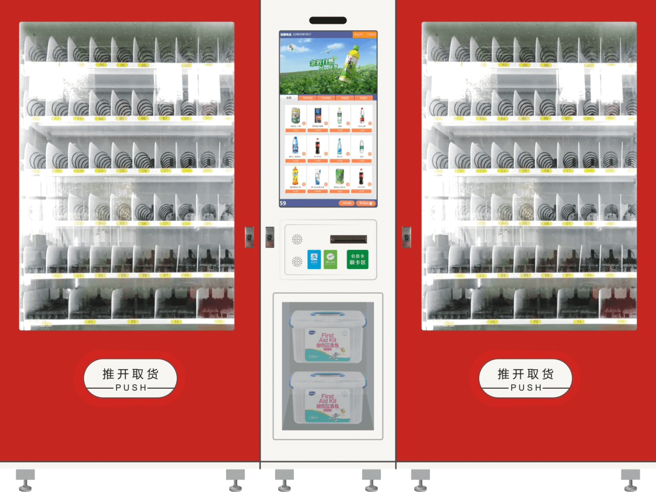 扩展功能:两层旋转展台,可以承接各种商品成列展示及宣传,增加设备综合收益